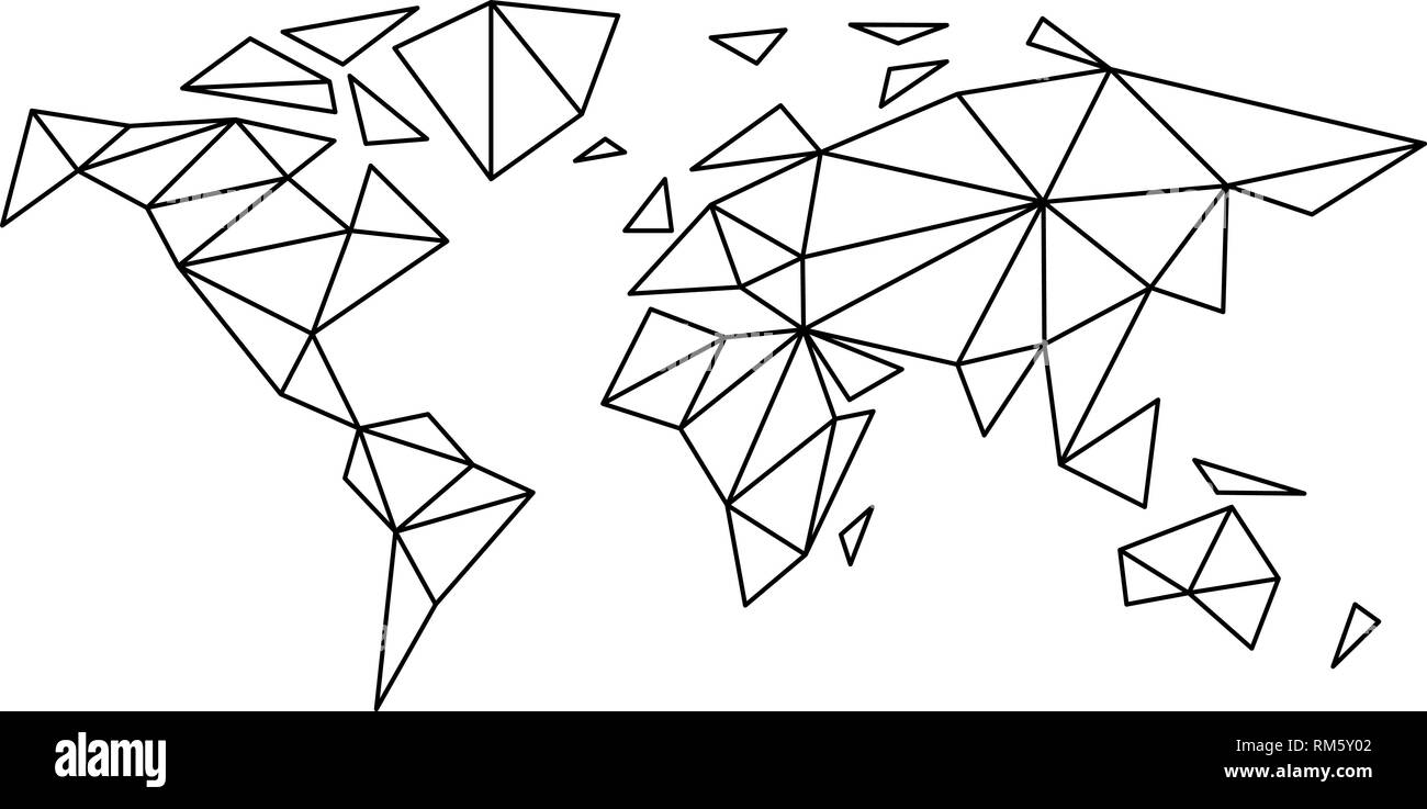 Fashion contour map of the world in the style of triangulation for