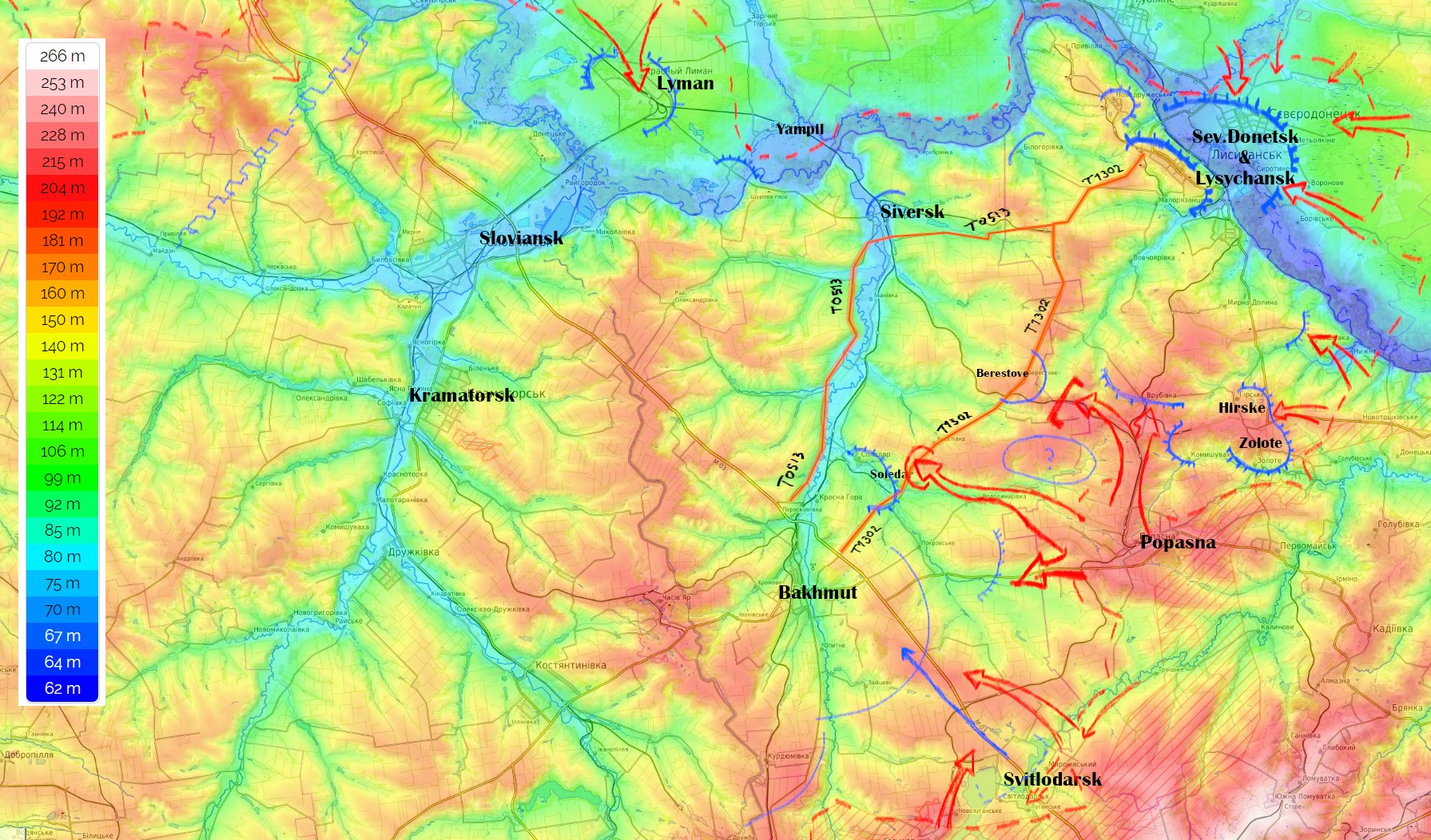 Visegrád 24 on X: “Topographic map of Bakhmut and Soledar. https
